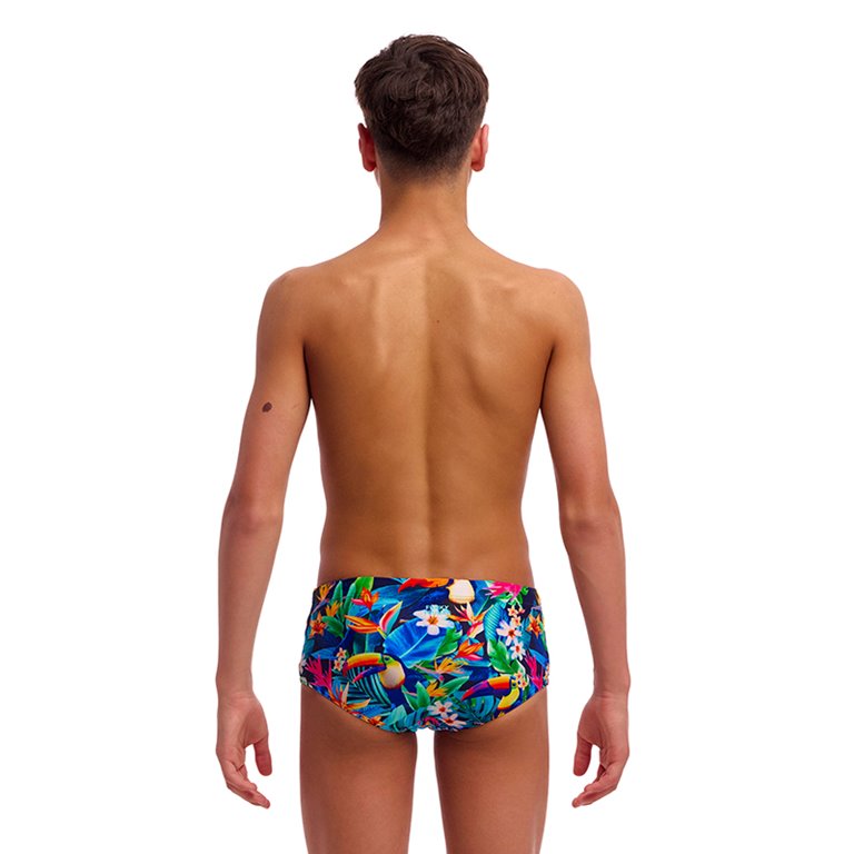 Boxer de bain pour garçon FUNKY TRUNKS. Coupe 12cm et muni d'une ceinture à élastique plat, le devant est doublé. Le logo est brodé au dos. Il est fabriqué à partir d'un polyester ultra résistant au chlore. Idéal pour l'entrainement et la compétition des nageurs intensifs et réguliers.