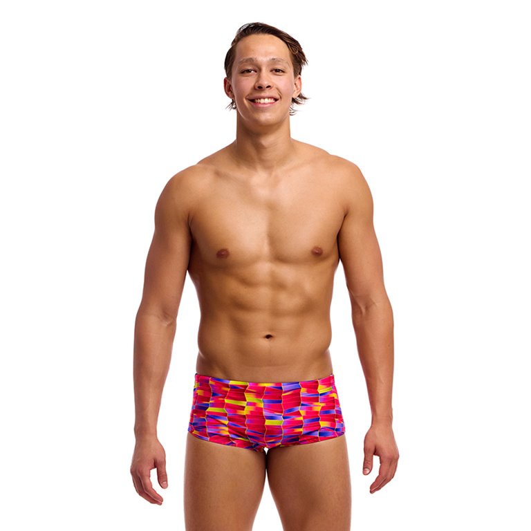 Boxer de bain pour homme FUNKY TRUNKS. Coupe 14cm et muni d'une ceinture à élastique plat, le devant est doublé. Le logo est brodé au dos. Il est fabriqué à partir d'un polyester ultra résistant au chlore. Idéal pour l'entrainement et la compétition des nageurs intensifs et réguliers.
